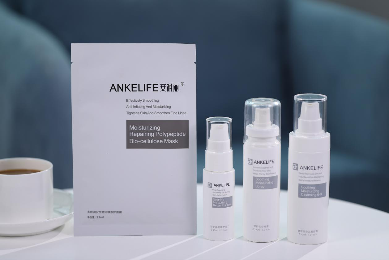 通過(guò)上千個(gè)日夜的調(diào)試、功效評(píng)價(jià)等,安科麗科研團(tuán)隊(duì)成功地將皮膚科臨床經(jīng)驗(yàn)運(yùn)用于化妝品研發(fā)中,并形成了以多肽為核心成分、透明質(zhì)酸鈉、舒緩成分為佐的安心配方。