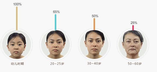 30歲玻尿酸的含量只有嬰兒時(shí)期的65%